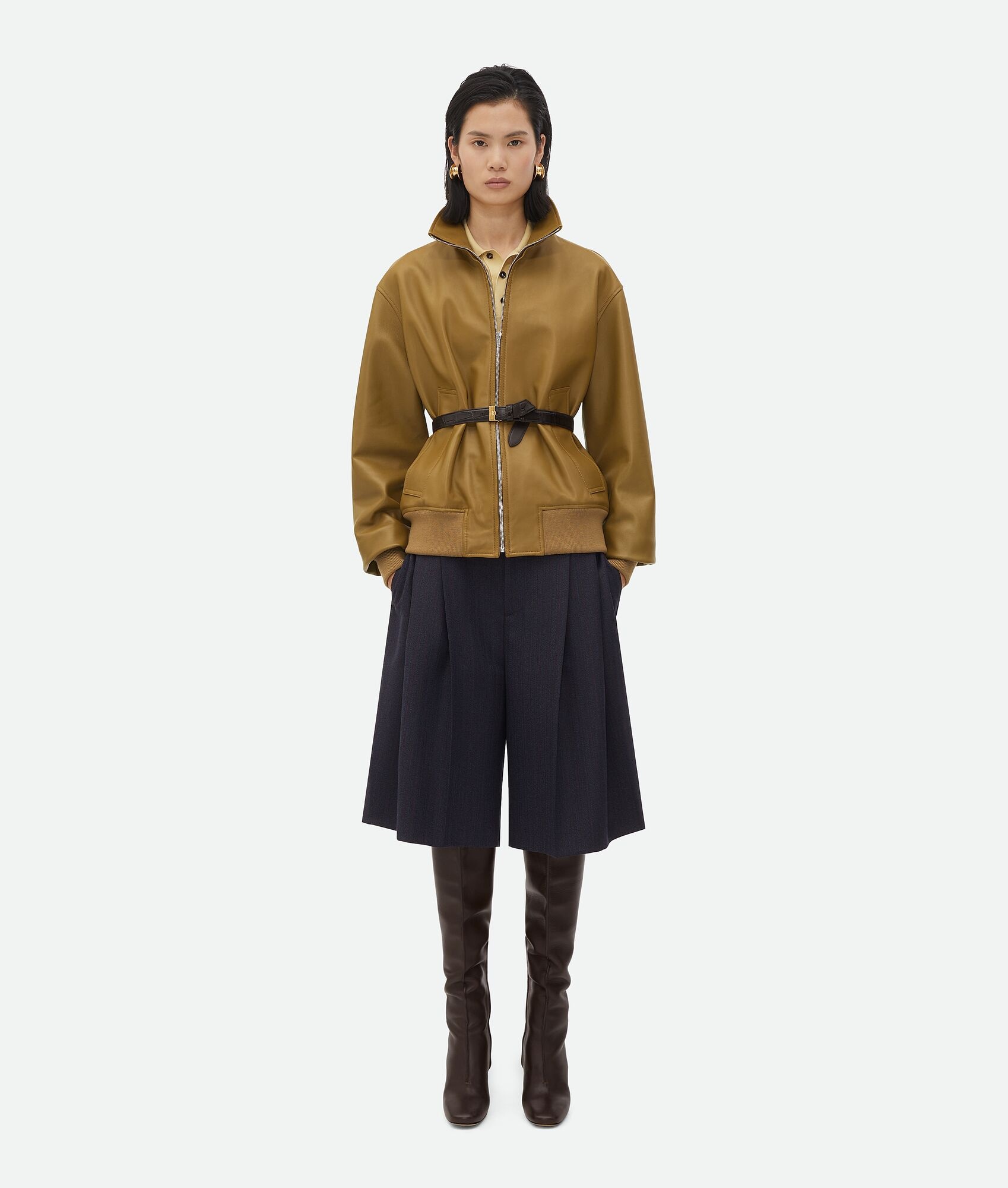 Blouson in soft nappa leather. Product details • Nappa leather blouson • Zip closure • Lined in check cotton • Relaxed fit Material: 100% Lambskin • Color: Acorn Made in: Italy Size & fit • Model is 180 cm | 5'11" and is wearing a Bottega Veneta size 38