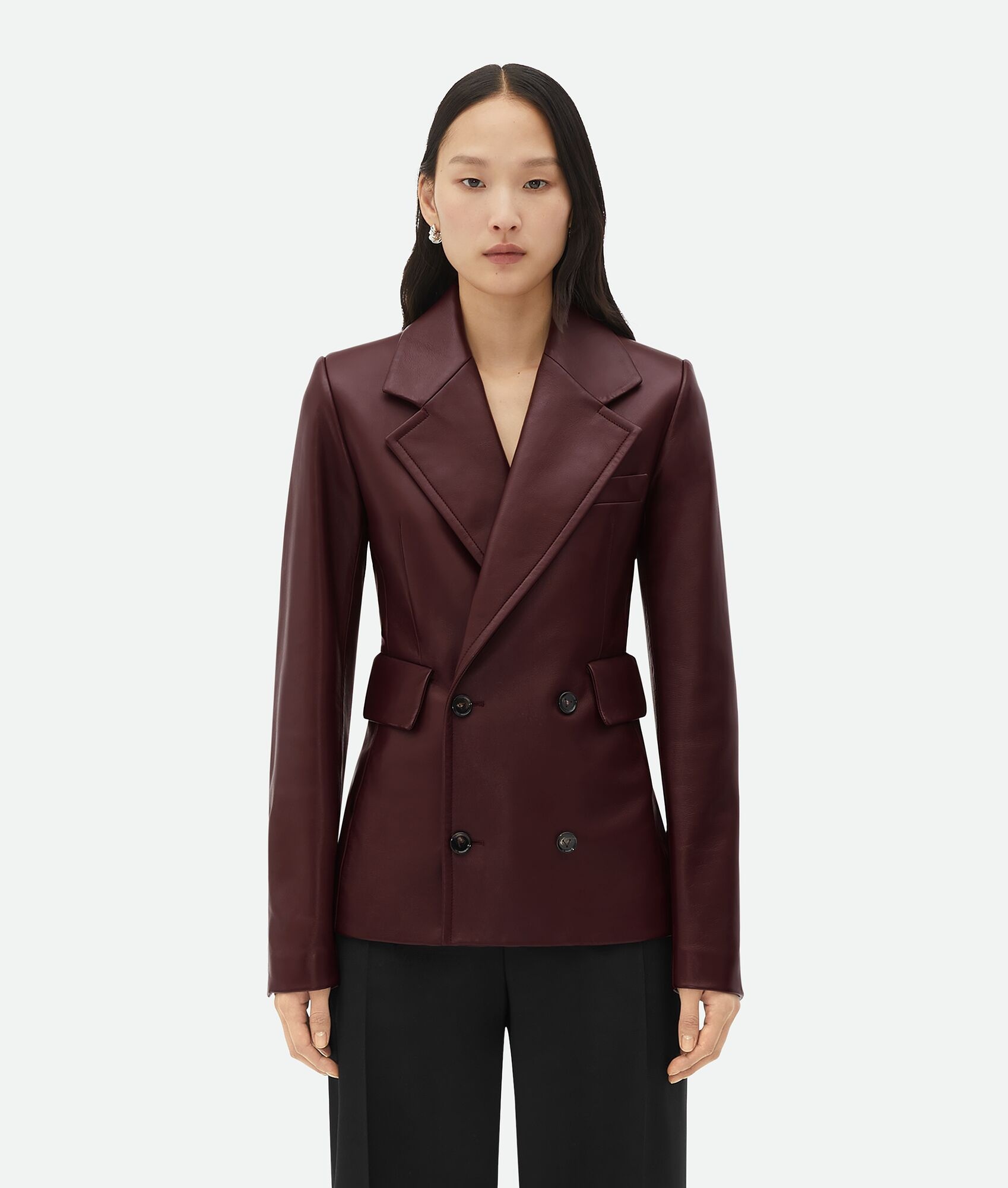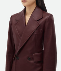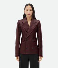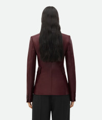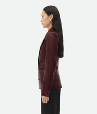 Soft nappa leather jacket. Product details • Soft nappa leather jacket • Button closure • Fully lined • Slim fit Material: 100% Lambskin • Color: Jam Made in: Italy Size & fit • Model is 177 cm | 5'9" and is wearing a Bottega Veneta size 38