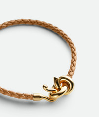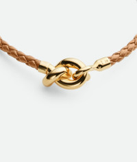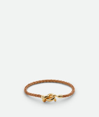 Product Details - Braided nappa leather and 18k gold-finish sterling silver bracelet - Knot with integrated hook closure - Color: Pale Brown - Made in: Italy - Product code: 846029VAHUA2785 Material - Material: Sterling silver Size & Fit - Knot dimensions: 17 x 11 mm | 0.7 x 0.4" - Coaxial diameter: 3 mm | 0.1" - Size S: 16.5 cm | 6.5" - Size M: 18 cm | 7.1" - Size L: 19.5 mm | 0.8"