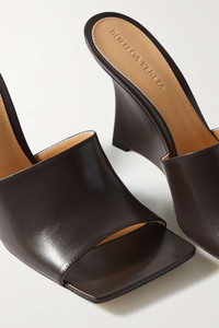 EDITORS'NOTES Bottega Veneta's minimal mules recall styles from the '90s, and the square toes give them a distinctly contemporary feel. They're made from smooth chocolate leather and are set on sculptural wedges. Style them with jeans and mini skirts alike. SIZE & FIT - Fits small to size, take a half size larger than normal - Italian sizing DETAILS & CARE - Wedge heel measures approximately 95mm/ 4 inches - Chocolate leather (Lamb) - Slip on - Designer color: Fondant Small to size. See Size & Fit notes.