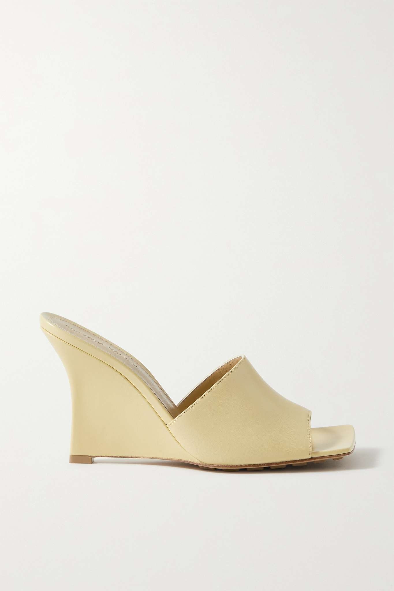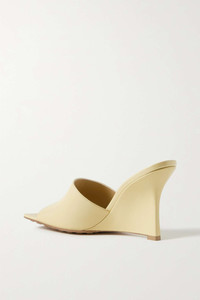 EDITORS'NOTES Bottega Veneta's minimal mules recall styles from the '90s, and the square toes give them a distinctly contemporary feel. They're made from smooth light-yellow leather and are set on sculptural wedges. Style them with jeans and mini skirts alike. SIZE & FIT - Fits small to size, take a half size larger than normal - Italian sizing DETAILS & CARE - Wedge heel measures approximately 95mm/ 4 inches - Light-yellow leather (Lamb) - Slip on - Designer color: Moon Beam Small to size. See Size & Fit notes.