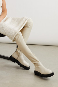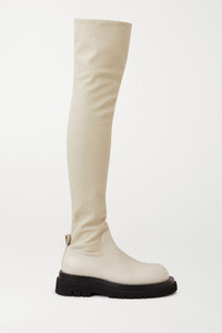 EDITORS'NOTES Bottega Veneta's over-the-knee boots have got 'hit' written all over them. Part of the Pre-Fall '20 collection designed under Daniel Lee's creative direction, this pair has been made in Italy from smooth leather and set on a thick rubber sole. The discreet zip fastening makes them easy to pull on. SIZE & FIT - Fits true to size, take your normal size - Narrow at the calf - Italian sizing DETAILS & CARE - Heel measures approximately 10mm/ 0.5 inches - Off-white leather - Zip fastening along side - Designer color: Wax - Made in Italy