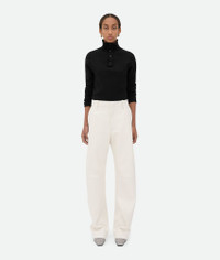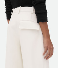 Nappa leather trousers with rounded leg. Product Details - Nappa leather trousers - Zip, button and hook closure - Rounded leg - Material: 100% lambskin - Color: Dove - Made in: Italy - Product code: 797751V3WT09317 Size & Fit - Model is 179 cm | 5'10" and is wearing a Bottega Veneta size 38