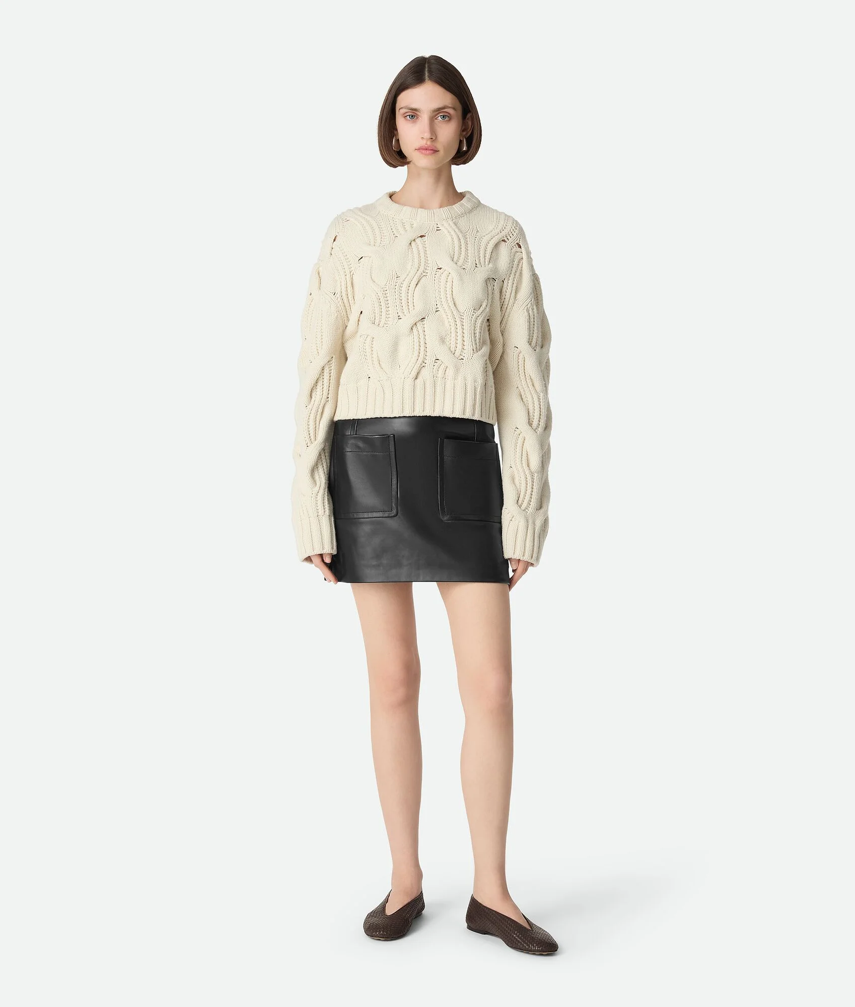 Mini skirt in midweight soft nappa lambskin. Product Details - Midweight soft nappa lambskin mini skirt - Zipper closure - Fully lined - Color: Black - Made in: Italy - Product code: 844002V5BX01000 Material - Material: 100% Lambskin Size & Fit - Model is 175 cm | 5'10" and is wearing a Bottega Veneta size 38