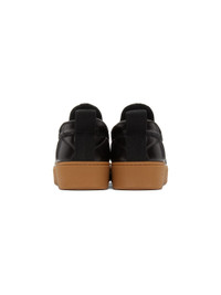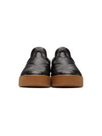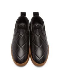 Low-top lambskin slip-on sneakers in brown. Quilted pattern embossed throughout. Round toe. Padded collar. Tonal webbing pull-loop at heel collar. Tonal terrycloth lining. Textured rubber midsole in tan. Treaded rubber outsole in tan. Supplier color: Fondant Upper: lambskin. Sole: rubber. Made in Italy 202798F128365