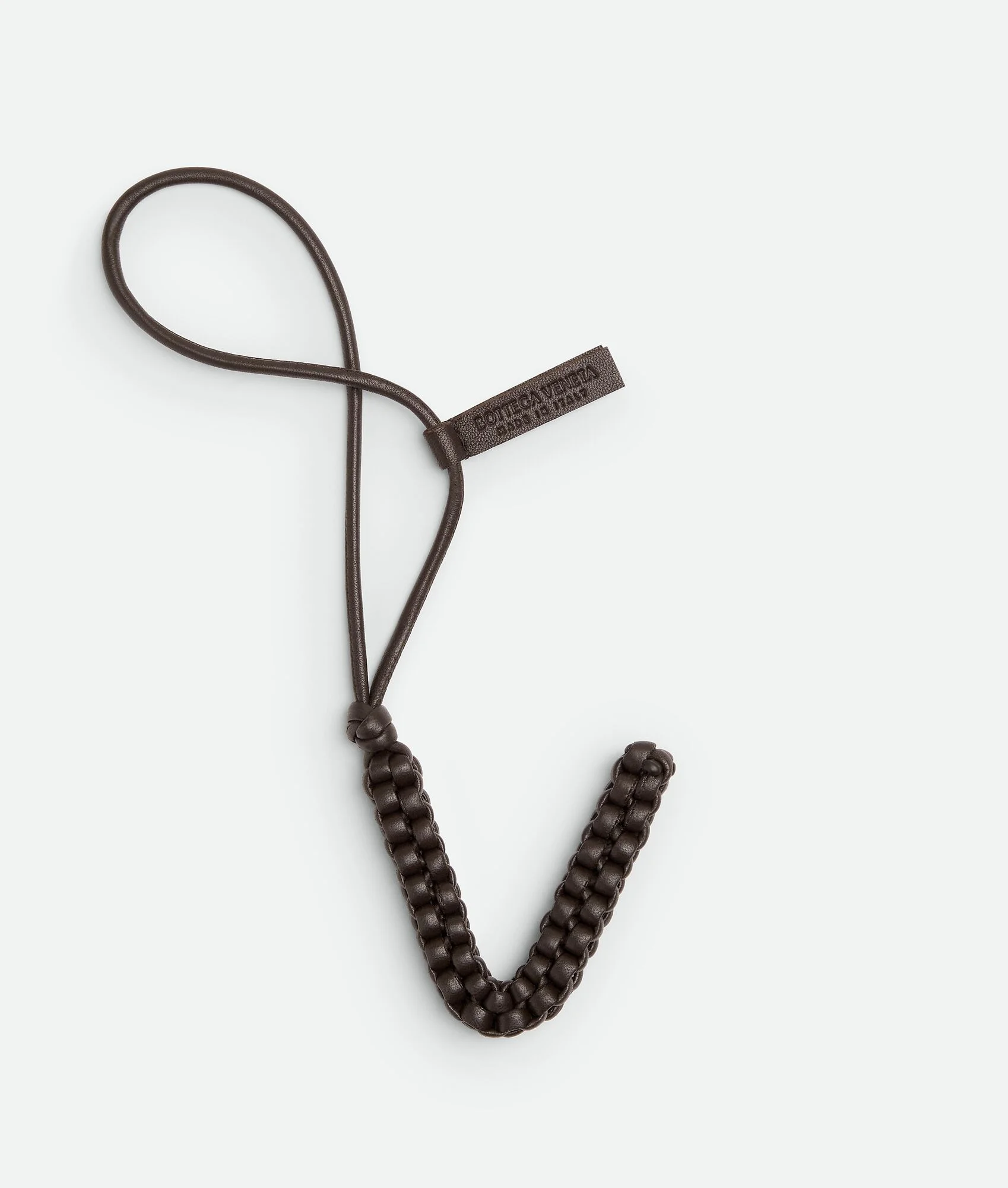 Product Details - Intreccio nappa leather alphabet letter charm with leather lanyard - Bottega Veneta leather tag - Leather lanyard designed to be attached to any handle - Lining: Unlined - Color: Fondant - Made in: Italy - Product code: 844695V3D812113 Material - Material: Lambskin Size & Fit - Height: 7 cm | 2.8" - Width: 7 cm | 2.8" - Depth: 1.5 cm | 0.6"