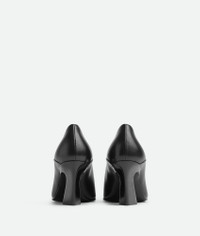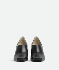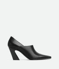 Pump in calfskin leather with sculptural sloped heel and elongated silhouette. Product Details - Leather pump - Material: calfskin - Lining: Lambskin - Color: Black - Leather outsole - Heel: 7.5 cm | 3” - Made in: Italy - Product code: 806723V4Q501000