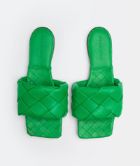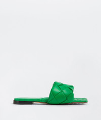 • Intreccio leather flat sandals Material: 100% Lambskin • Lining: Lambskin • Color: Grass • Rubber-injected leather outsole Made in: italy