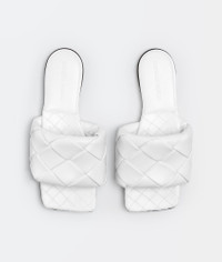 Intrecciato leather flat sandals. Product Details - Intrecciato leather flat sandals - Material: Lambskin - Lining: Lambskin - Color: Optic White - Rubber-injected leather outsole - Made in: Italy - Product code: 608853VBSS09122