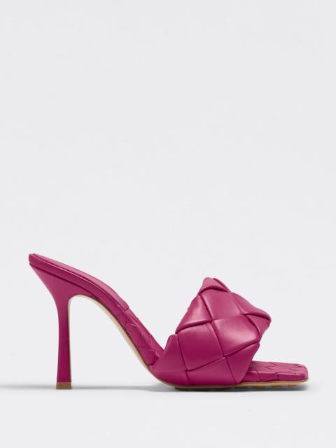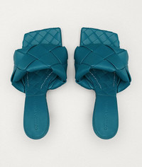 Woven leather mules with a squared sole • Signature woven intrecciato nappa amplified for a new dimension • Exceptionally soft nappa leather • Heel height: 9 cm | 3.5” • Squared sole designed to extend beyond the foot • Woven insole • Rubber-injected leather sole for comfort and stability DETAILS Composition: 100% Lambskin Color: Vintage Blue Heel height: 9 cm | 3.5” Made in Italy