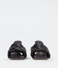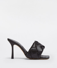 Intrecciato leather mules. Product details • Intrecciato leather mules Material: 100% Lambskin • Lining: Lambskin • Color: Black • Rubber-injected leather outsole • Heel: 9 cm | 3.5" Made in: Italy