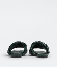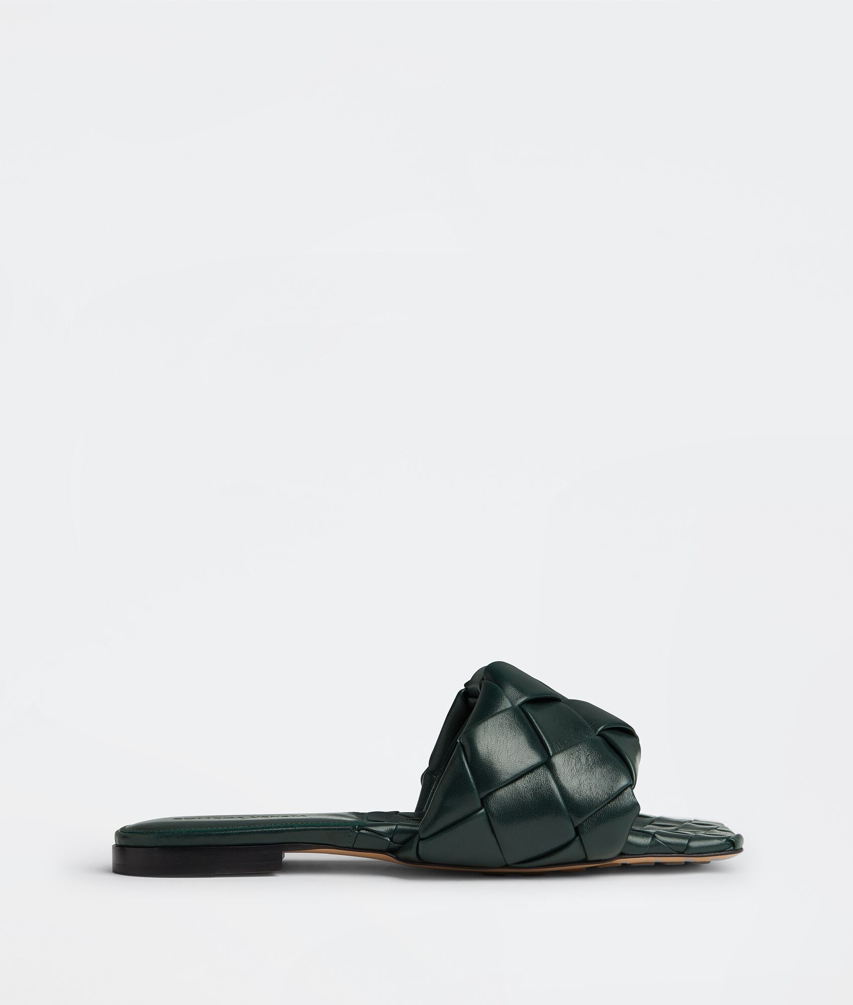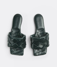 • Intreccio leather flat sandals Material: 100% Lambskin • Lining: Lambskin • Color: Inkwell • Rubber-injected leather outsole Made in: italy