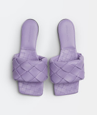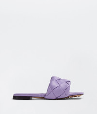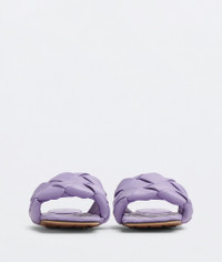 • Intreccio leather flat sandals Material: 100% Lambskin • Lining: Lambskin • Color: Wisteria • Rubber-injected leather outsole Made in: italy