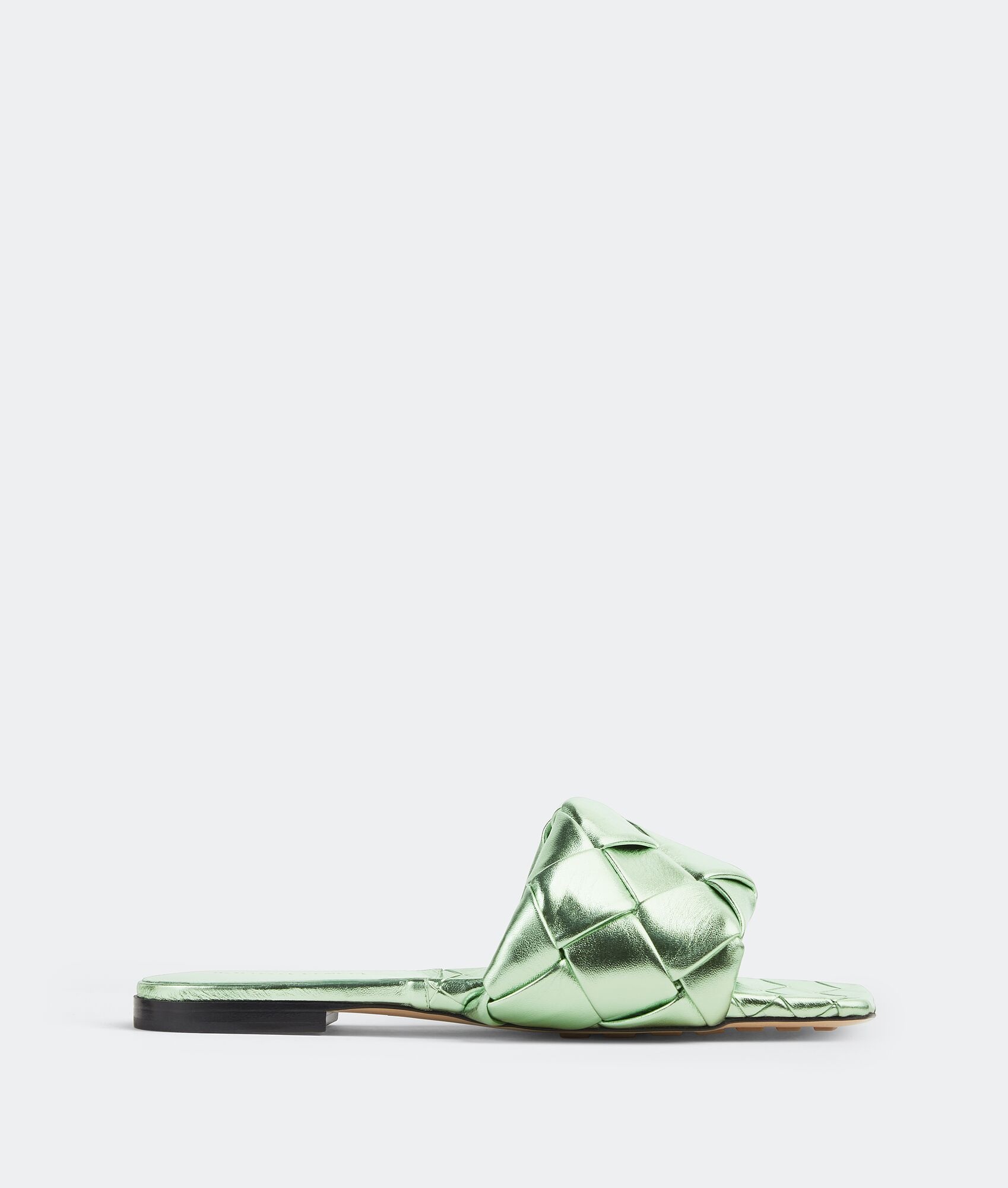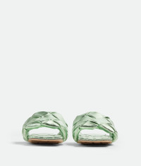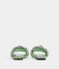 • Intreccio metallised leather flat sandals Material: 100% Lambskin • Lining: Lambskin • Color: Pistachio • Rubber-injected leather outsole Made in: Italy