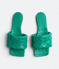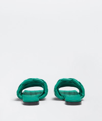 • Intrecciato leather flat sandals Material: 100% Lambskin • Lining: Lambskin • Color: Acid Turquoise • Rubber-injected leather outsole Made in: italy