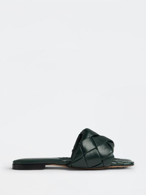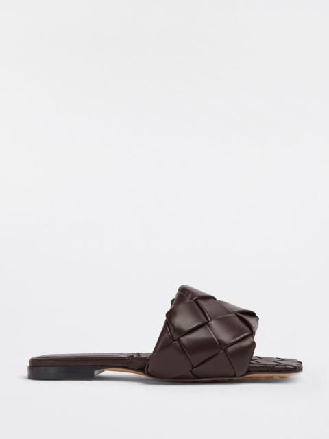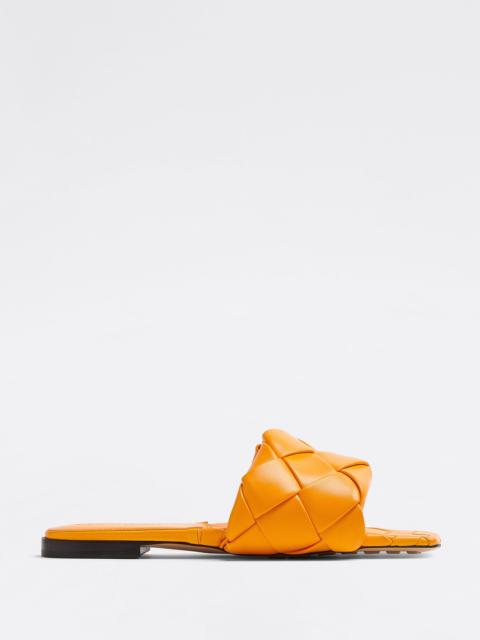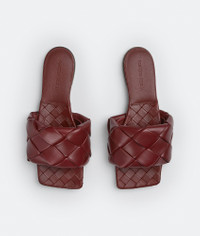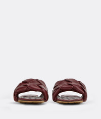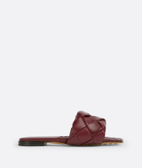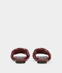 • Intreccio leather flat sandals Material: 100% Lambskin • Lining: Lambskin • Color: Cherry • Rubber-injected leather outsole Made in: Italy