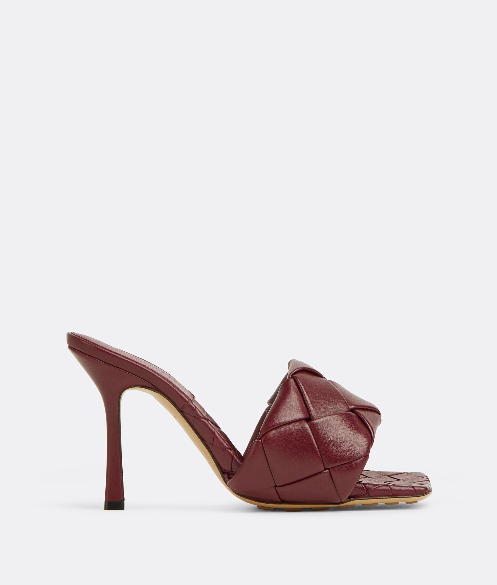 • Intreccio leather mules Material: 100% Lambskin • Lining: Lambskin • Color: Cherry • Rubber-injected leather outsole Heel: 9 cm | 3.5" Made in: Italy