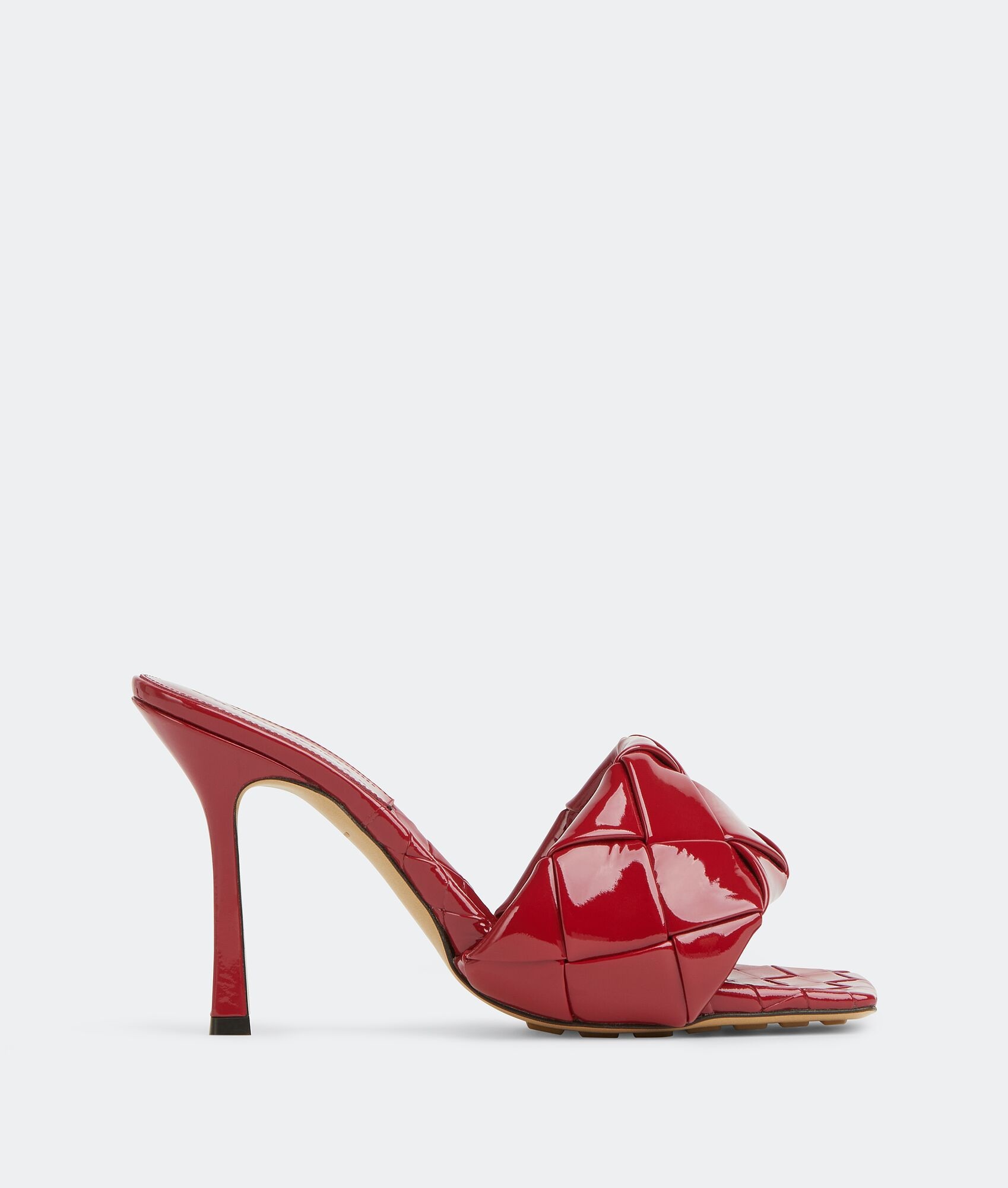 • Intreccio Patent leather mules Material: 100% Calfskin • Lining: Lambskin • Color: Apple Candy • Rubber-injected leather outsole Heel: 9 cm | 3.5" Made in: Italy