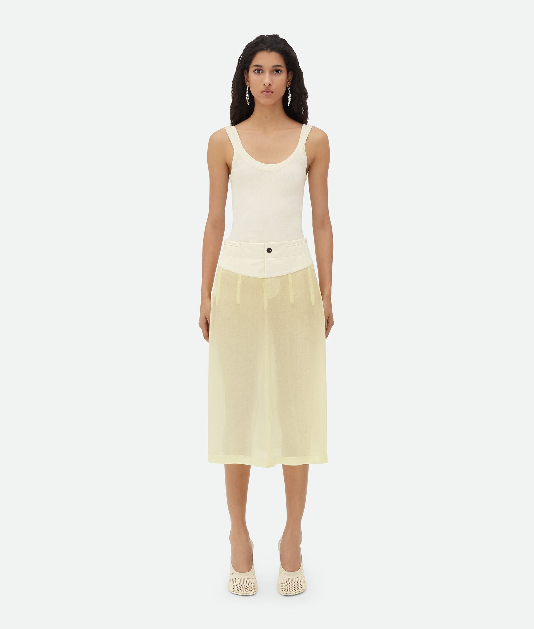 Midi skirt sewn in a light cotton gauze with cotton lining. Product details • Light cotton gauze midi skirt • Button closure Material: 100% Cotton • Color: Banana Made in: Italy Size & fit • Model is 178 cm | 5'10" and is wearing a Bottega Veneta size 38