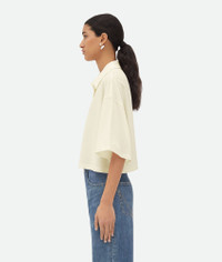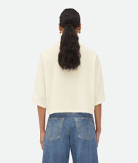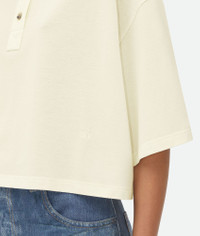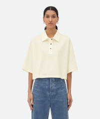 Cropped polo in light cotton piquet. Product Details - Light cotton piquet cropped polo - Button closure - "BV" embroidery detail - Relaxed cropped fit - Material: 57% Cotton, 43% Lyocell - Color: Dove - Made in: Italy - Product code: 796164V4DG09317 Size & Fit - Model is 175 cm | 5'8" and is wearing a Bottega Veneta size S