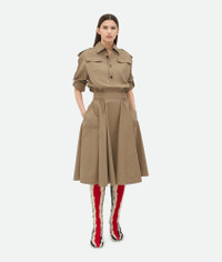A-line midi dress in light cotton twill. Product Details - Light cotton twill A-line midi dress - Button closure - Unlined - Regular fit - Material: 100% Cotton - Color: Desert Taupe - Made in: Italy - Product code: 791774V4CS09281 Size & Fit - Model is 177 cm | 5'9" and is wearing a Bottega Veneta size 38