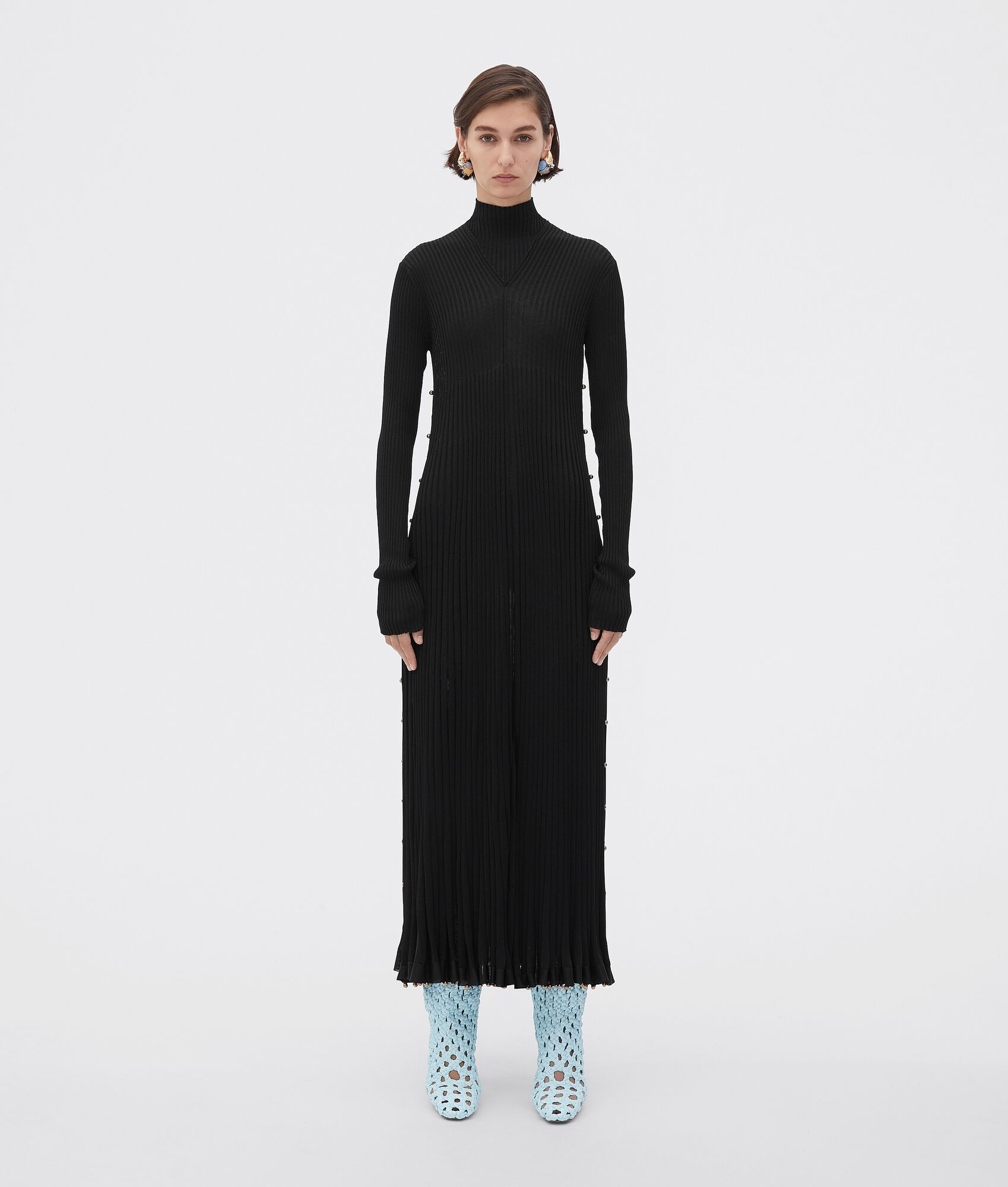 • Lightweight viscose plissé dress • Hand-applied beads at sides and at back • Beads closure • Unlined • Regular fit Material: 50% Viscose, 50% Polyester • Color: Black Made in: Italy