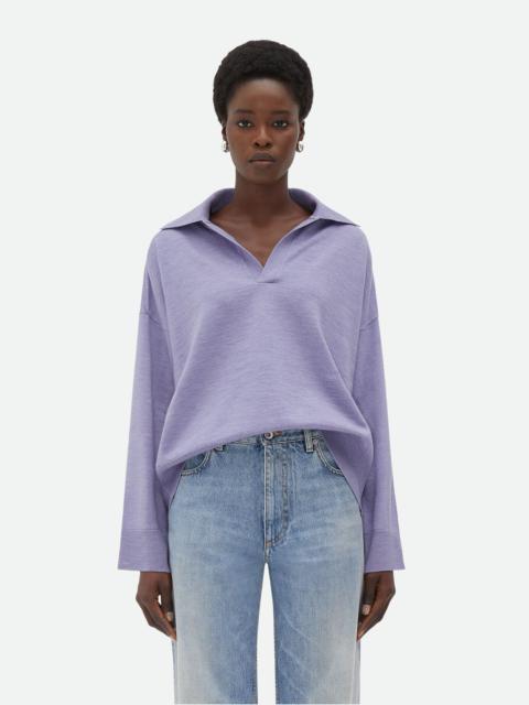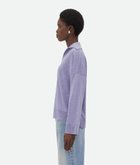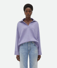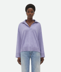 Polo realised in lightweight wool with a soft touch. Features brand embroidery on Product details • Light wool polo sweater • "BV" embroidery on the front • Regular fit Material: 100% Wool • Color: Perwinkle Made in: Italy Size & fit • Model is 179 cm | 5'10" and is wearing a Bottega Veneta size S