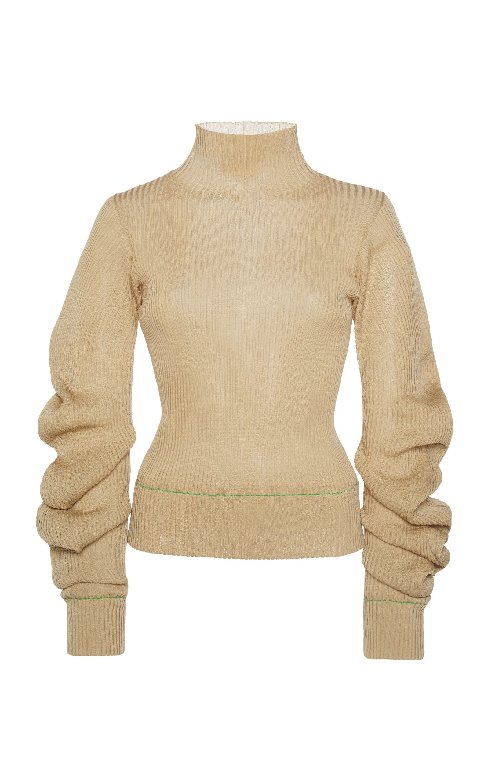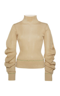 From knitted suiting sets to a colorful update on cult hit accessories, Bottega Veneta's newest collection puts a high fashion lens on everyday luxury — one that's ready for a new reality. Tailored in a lightweight knit, this turtleneck sweater stands out with long spiraling statement sleeves. Pair yours with the brand's wool pants for a look that's tailored and elevated. PRODUCT DETAILS - Slip on - Composition: light weight knit - Dry clean - Imported SIZE & FIT - Our model is 180cm / 5'11"and is wearing a size Small - This style fits true to size - We suggest taking your usual size