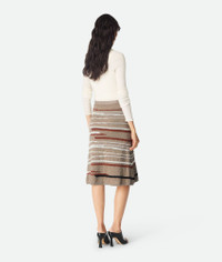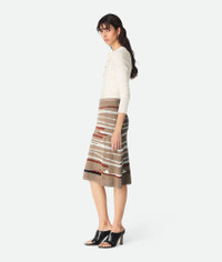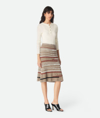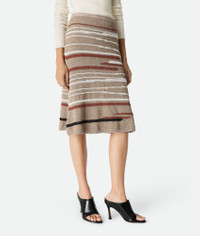 Skirt in lightweight linen and cotton with Venice-inspired intarsia knit design. Product Details - Lightweight linen and cotton graphic skirt - Elasticated waistband - Material: 73% Linen, 27% cotton - Color: Stonemel/Maple/Chalk - Made in: Italy - Product code: 831452V5LW01501 Size & Fit - Model is 178 cm | 5'10" and is wearing a Bottega Veneta size S