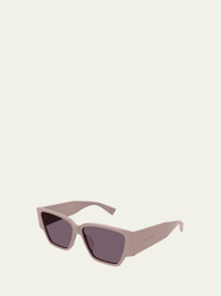 Bottega Veneta "BV1285S" butterfly sunglasses in recycled acetate Lens/bridge/temple (in mm): 57-13-140 Solid lenses Saddle nose bridge Triangle and script logo on temples Wide, tapered arms 100% UVA/UVB protection Made in Italy Proposition 65 warning for California residents Online Inquiries: BGS21_D4YB2| Store Inquiries: #4823352