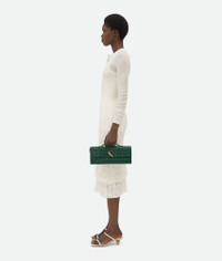 Clutch with handle realised with Intrecciato craftsmanship in soft lambskin leather Product details • Intrecciato leather handle clutch with metallic knot closure • Six card slots, one additional pocket • Metal knot closure Material: 100% Lambskin • Lining: Calfskin • Color: Emerald Green • Hardware: Brass finish • Height: 13 cm | 5.1" • Width: 31 cm | 12.2" • Depth: 3 cm | 1.2" Made in: Italy