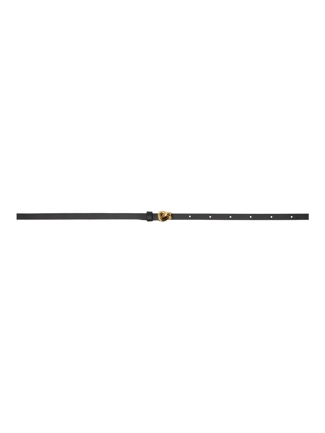 Grained calfskin belt in black. · Graphic hardware at post-stud fastening · Gold-tone hardware · W0.25" Supplier color: Black/Muse brass Calfskin. Made in Italy 241798F001004