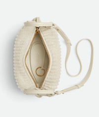 Product Details - Corduroy effect shearling cross-body bag with double handles and detachable strap - Single compartment - Detachable interior split ring with leather strap - Zip closure - Lining: Lambskin - Color: Plaster - Hardware: Brass finish - Made in: Italy - Product code: 796615V65A19614 Material - Material: Shearling Size & Fit - Height: 13 cm (5.1") - Width: 21 cm (8.3") - Depth: 13 cm (5.1") - Handle drop: 9 cm (3.5") - Strap drop: 46 cm (18.1")