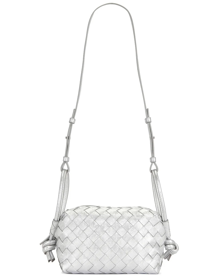 Details - Laminated leather with canvas lining - Top zip closure - One main compartment - Dual loop straps with knotted ends - Removable crossbody strap - Measures approx 21 cm W x 13 cm H x 13 cm D - Top handle with a 13 cm drop - Made in Italy - Our Style No. BOTT-WY1991 - Manufacturer Style No. 844285-V5XF1-8101