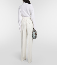 Upgrade your tailoring edit with these pants from Bottega Veneta. The low-rise design is crafted from a lightweight cotton blend with wide legs and is complete with a comfortable elasticated waistband. Product Details - Made in Italy - Closure: zipper fly, button and hook fastenings - Elasticated waistband - Belt loops - Material: 20% viscose, 8% polyester, 72% cotton - Pockets: welt pocket, side slit pockets - Designer color name: String - Pocket lining: 100% cotton - Care instructions: dry clean - Contains non-textile parts of animal origin - Item number: P00830037 Size & Fit - Fits large to size - we recommend trying one size smaller - Elasticated waist - Mid-weight material - Wide-leg - High-waisted - Unhemmed for tailoring - The model seen in the picture is 178cm-5'10" and wearing a size IT 38