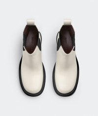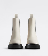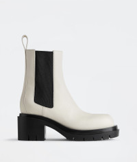 Vegetable-tanned leather Chelsea boots. Product details • Vegetable-tanned leather Chelsea boots Material: 100% Calfskin • Lining: Calfskin • Color: Sea Salt • Rubber outsole • Heel: 7 cm | 2.8" • Platform: 3 cm | 1.2" • We recommend to take half a size down Made in: Italy