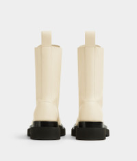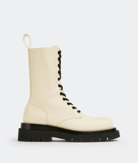 • Leather lace-up boots Material: 100% Calfskin • Lining: Calfskin • Color: Sea Salt/Black • Micro rubber outsole • Flatform: 5.5 cm | 2.1" • We recommend to take half a size down Made in: Italy