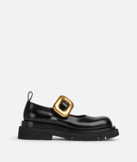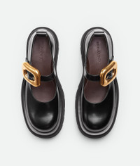 Brushed leather Mary-Jane flats. Product Details - Brushed leather Mary-Jane flats - Material: calfskin - Lining: Calfskin - Color: Black - Hardware: Gold finish - Ultra lightweight rubber slides - Flatform: 5.5 cm | 2.2" - Made in: Italy - Product code: 729884V20V01000