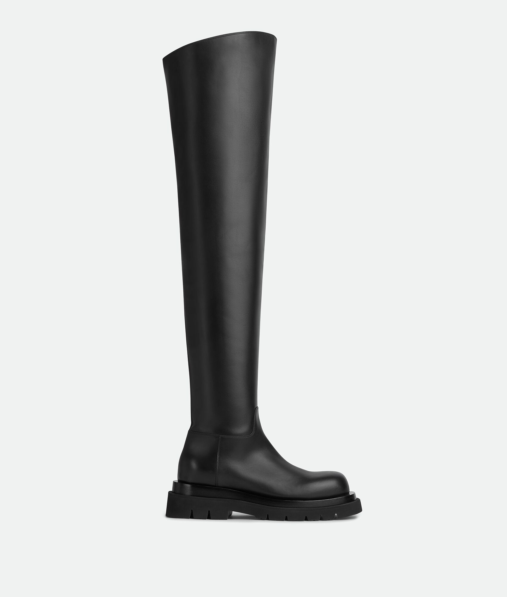 Leather over-the-knee boots. Product details • Leather over-the-knee boots Material: 100% Calfskin • Lining: Calfskin • Color: Black • Micro rubber outsole • Flatform: 5.5 cm | 2.1" Made in: Italy