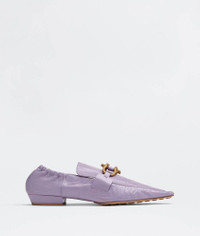 • Leather loafers Material: 100% Lambskin • Unlined • Color: Lavender • Hardware: Gold finish • Rubber-injected leather outsole Made in: italy