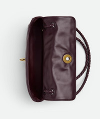 Product Details - Supple lambskin leather shoulder bag with sliding cross-body strap - The memory flap can be reshaped and adapted to hold countless forms - One main compartment - Single interior zipped pocket - Metallic knot lock closure - Lining: Lambskin - Color: Dark Barolo - Hardware: Brass finish - Made in: Italy - Product code: 836296V5TJ02265 Material - Material: Lambskin Size & Fit - Height: 16 cm (6.3") - Width: 27 cm (10.6") - Depth: 6 cm (2.4") - Strap drop: 50 cm (19.7")