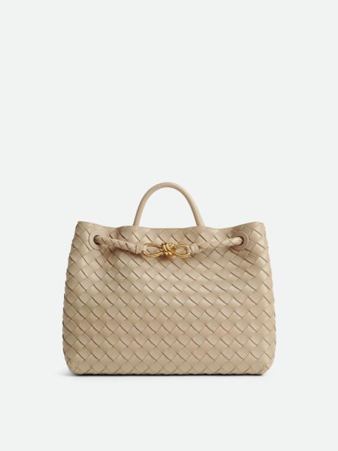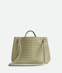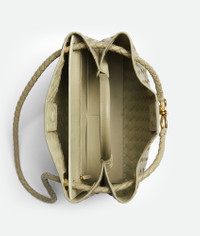 Top handle bag meticulously crafted in supple Intrecciato nappa leather with a sliding Product details • Medium Intrecciato leather top handle bag with sliding cross-body strap • Compartmented interior with one zippered pocket, two open pockets • Magnetic closure Material: 100% Lambskin • Lining: Lambskin bonded Intrecciato • Color: Travertine • Hardware: Brass finish • Height: 25 cm | 9.8" • Width: 32 cm | 11.6" • Depth: 11 cm | 4.3" • Handle drop: 9 cm | 3.5" • Strap drop: 45 cm | 17.7" Made in: Italy