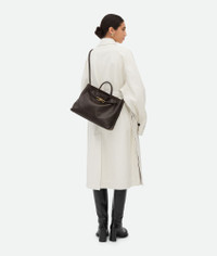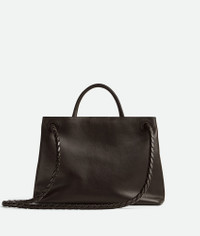 Top handle bag in silky calf leather with signature knot detail and sliding cross-body Product Details - Medium silky calfskin top handle bag with sliding cross-body strap - Intrecciato leather internal pocket - Magnetic closure - Material: calfskin - Lining: Suede - Color: Fondant - Hardware: Brass finish - Height: 25 cm | 9.8" - Width: 32 cm | 12.6" - Depth: 11 cm | 4.3" - Handle drop: 9 cm | 3.5” - Strap drop: 45 cm | 17.7” - Made in: Italy - Product code: 810214V4O922190