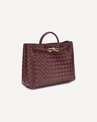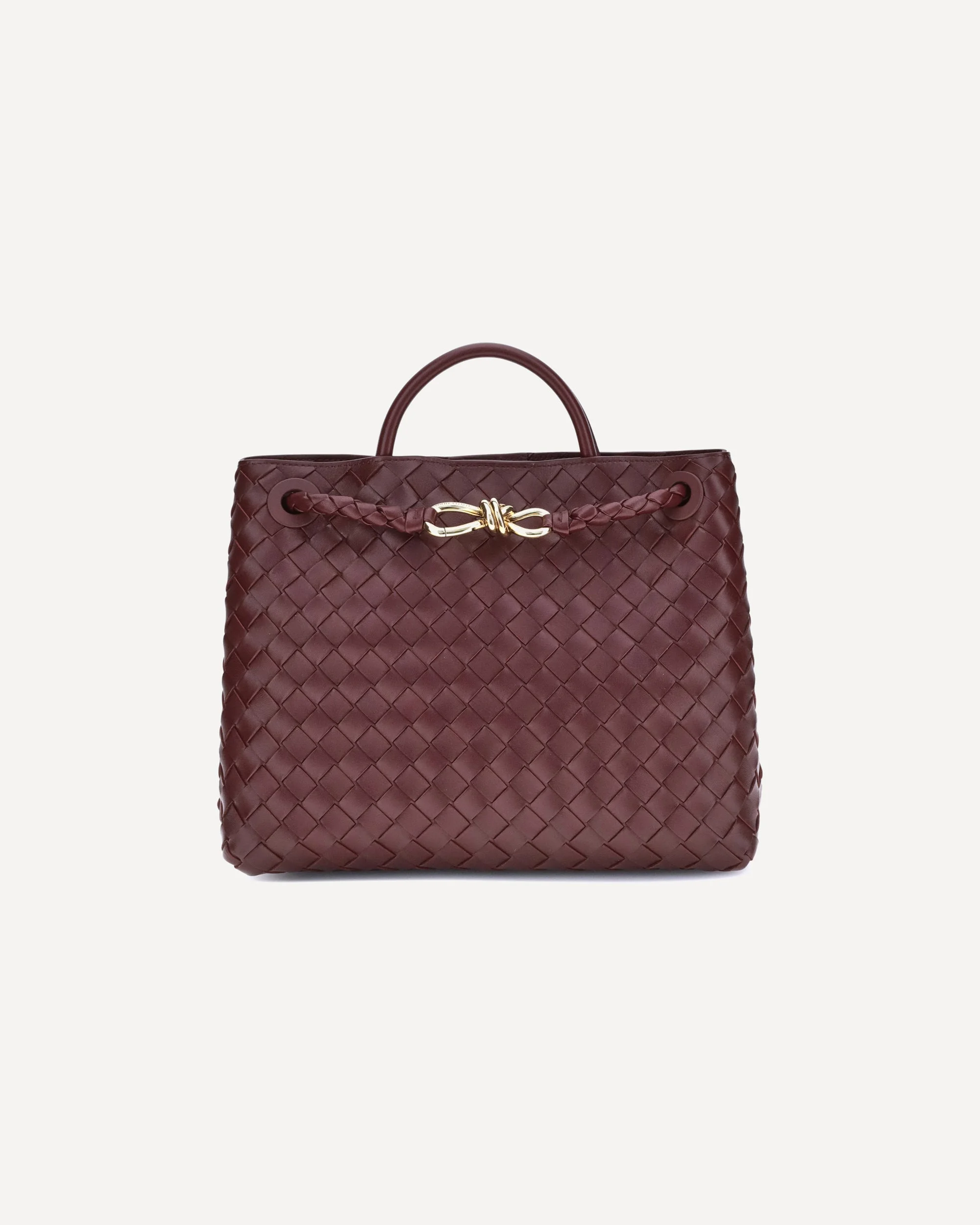 Bottega Veneta's Andiamo Shoulder Bag in Lambskin features a single, stiff top handle for an elegant grip. The slim sliding shoulder strap is embellished with the iconic antique brass knotted detail on the front. The design features the brand's iconic all-over repeated weave. Inside, the bag offers a single interior compartment, ideal for simple and elegant organization. DETAILS - Sku: 766016VCPP1_2273 - Season: AW25 - Dimension: 32x32x11 - MADE IN ITALY