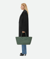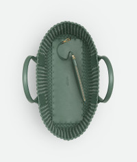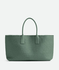 Intreccio leather tote bag. This bag is eligible for Certificate of Craft. Product Details - Medium Intreccio leather tote bag - Detachable interior zipped pouch - Material: Lambskin - Unlined - Color: Aloe - Hardware: Gold finish - Height: 29 cm | 11.4" - Width: 40 cm | 15.7" - Depth: 16 cm | 6.3" - Handle drop: 18 cm | 7.1" - Made in: Italy - Product code: 608810V1OW13198