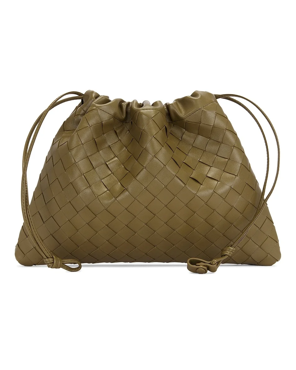 Details - Intrecciato calf leather exterior with ripstop lining - Made in Italy - Drawstring top closure - One main compartment - Measures approx 32 cm W x 23 cm H x 1 cm D - Shoulder strap with a 35 cm drop - Our Style No. BOTT-WY1820 - Manufacturer Style No. 796728-V3IV1-2933
