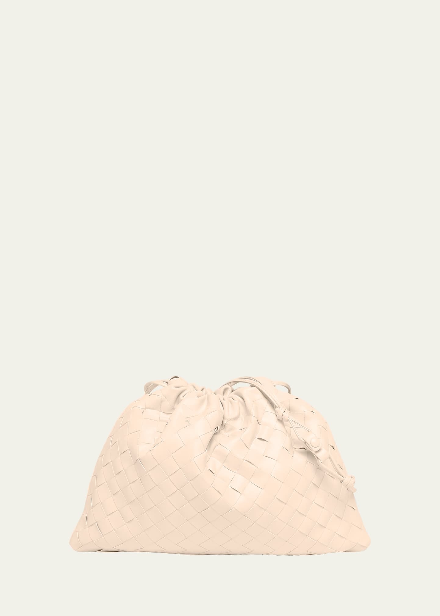 Bottega Veneta pouch bag in intrecciato leather Drawstring closure Approx. 9"H x 12.6"W x 0.4"D Made in Italy Online Inquiries: BGS21_V6910| Store Inquiries: #4823194
