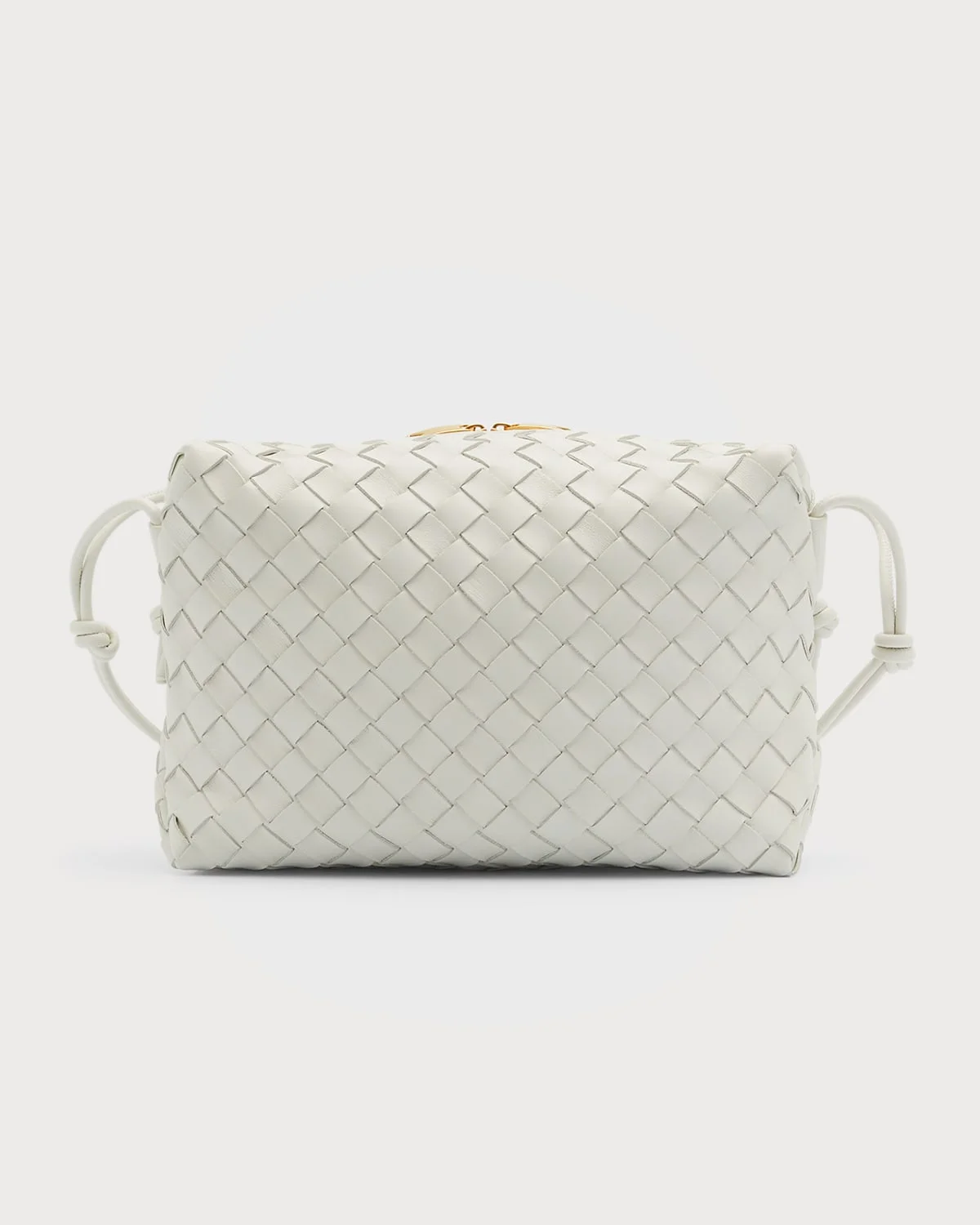 - Bottega Veneta clutch bag in woven lambskin leather - Shoulder strap, 50 cm/ 19.6" drop - Two-way zip top closure - Knot accent on sides - Approx. 7"H x 9.8"W x 4.3"D - "Nodini" is made in Italy