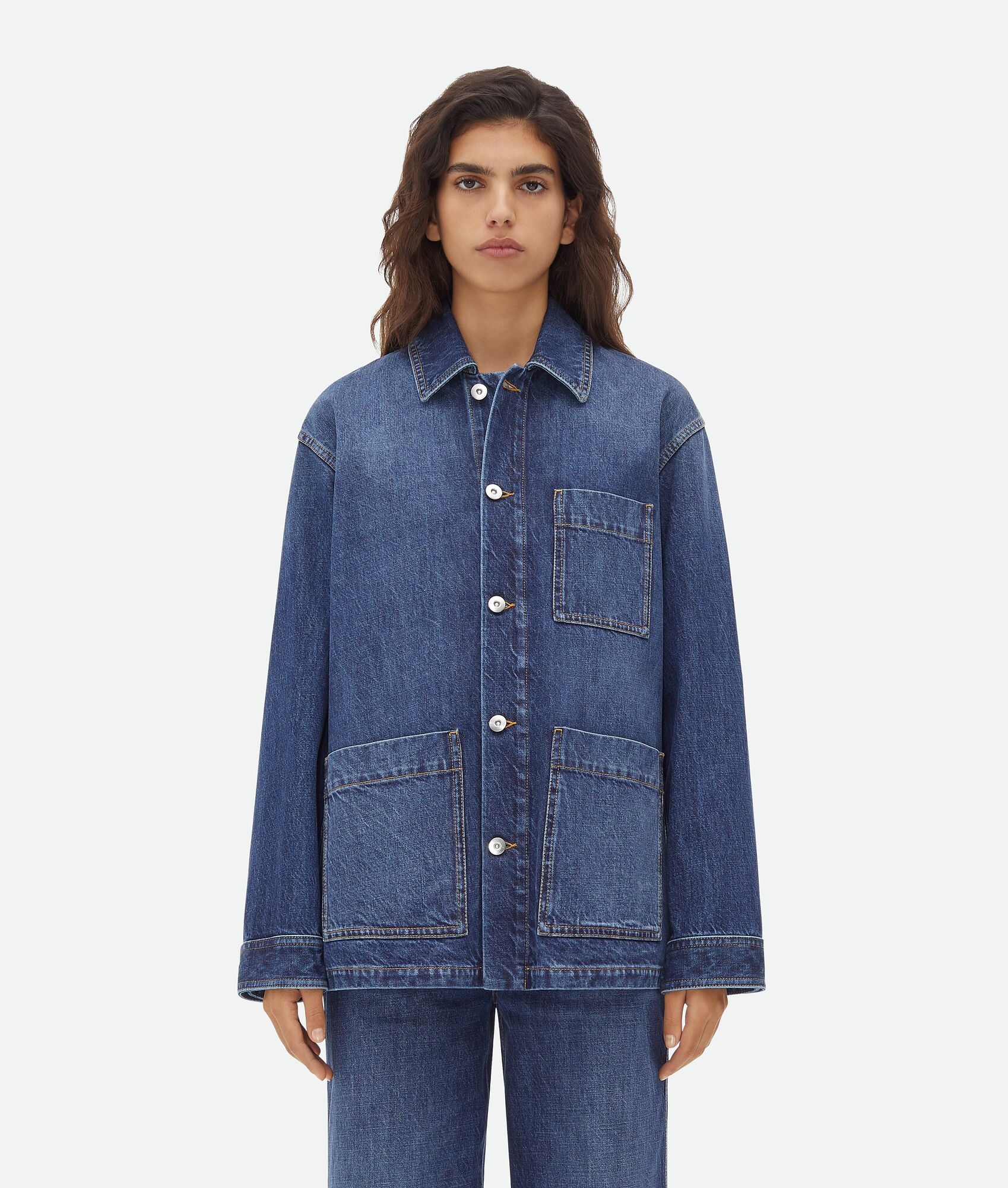 Jacket realised in medium washed indigo denim with multiple pockets on the front. Product details • Medium washed indigo denim jacket • Button closure • Relaxed fit Material: 100% Cotton • Color: Mid Blue Made in: Italy Size & fit • Model is 176 cm | 5'9" and is wearing a Bottega Veneta size 38
