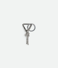 Metal key ring with signature knot detail, coaxial pattern, and triangle hook. Product Details - Metallic knot key ring with a coaxial pattern and triangle hook. - Hardware: Silver finish - Height: 10 cm | 3.9" - Width: 3 cm | 1.2" - Depth: 3 cm | 1.2" - Made in: Italy - Product code: 842767VCQP08101 Material - Material: Metal